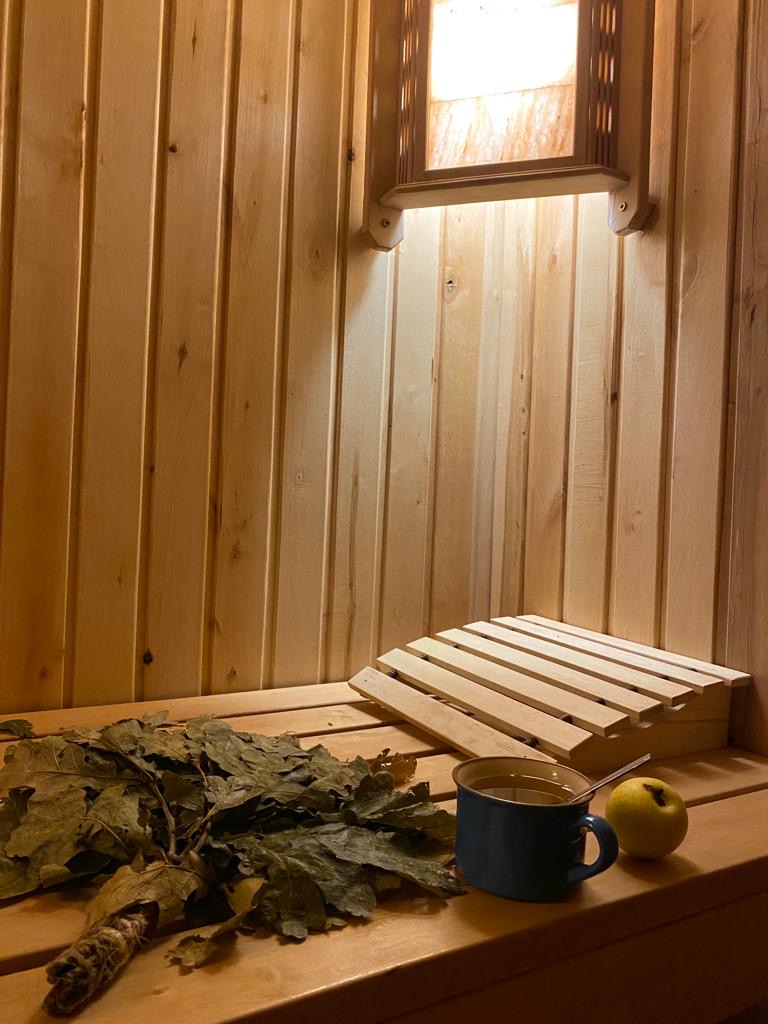• Ogrzewanie w saunie ( masaż witkami dębowymi i brzozowymi) – 3 wejścia do sauny 60C